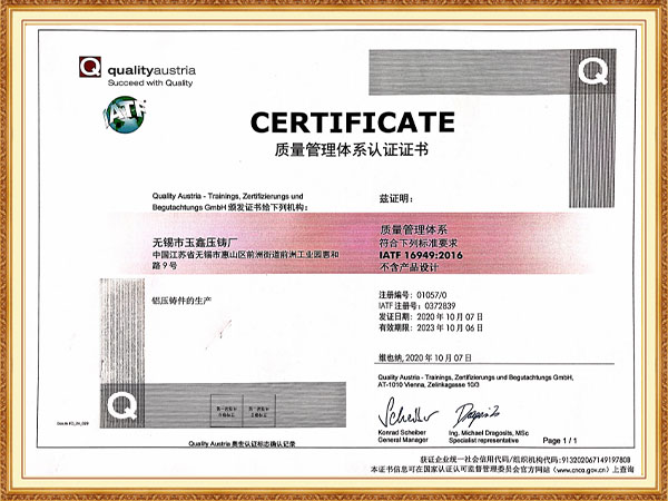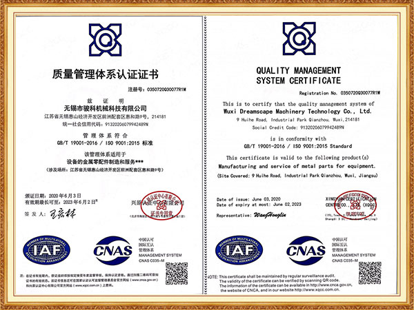 質(zhì)量管理體系證書 英